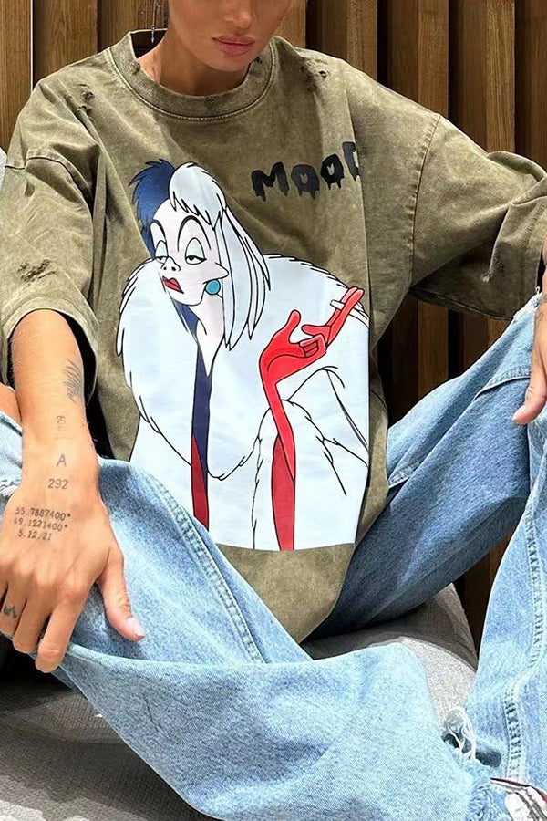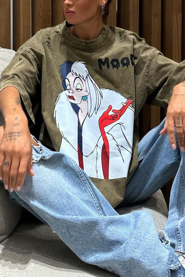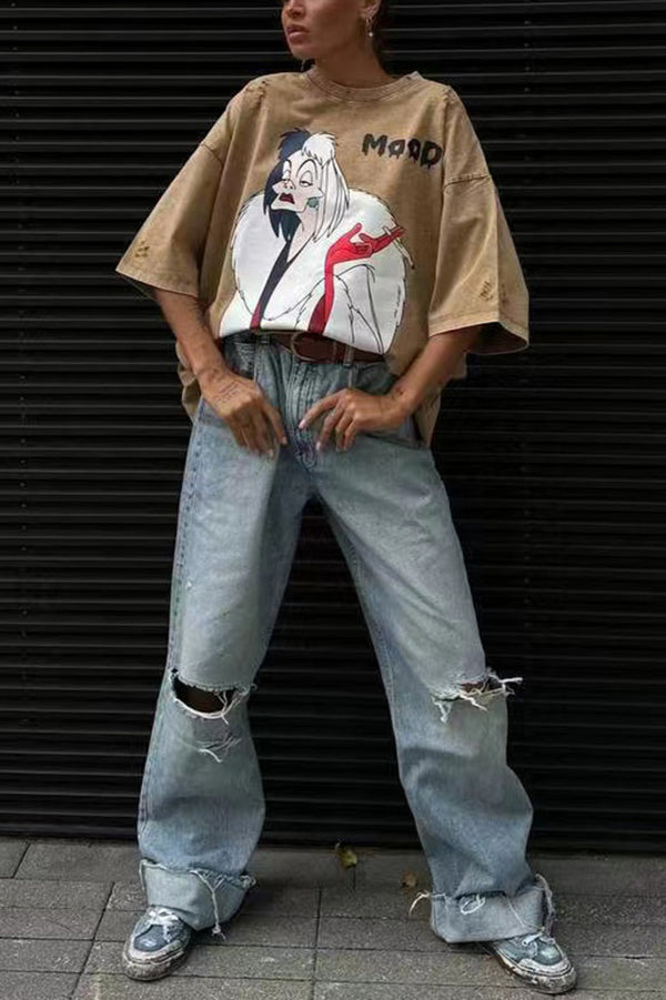 Camiseta holgada informal de manga corta con cuello redondo y estampado de anime de Halloween