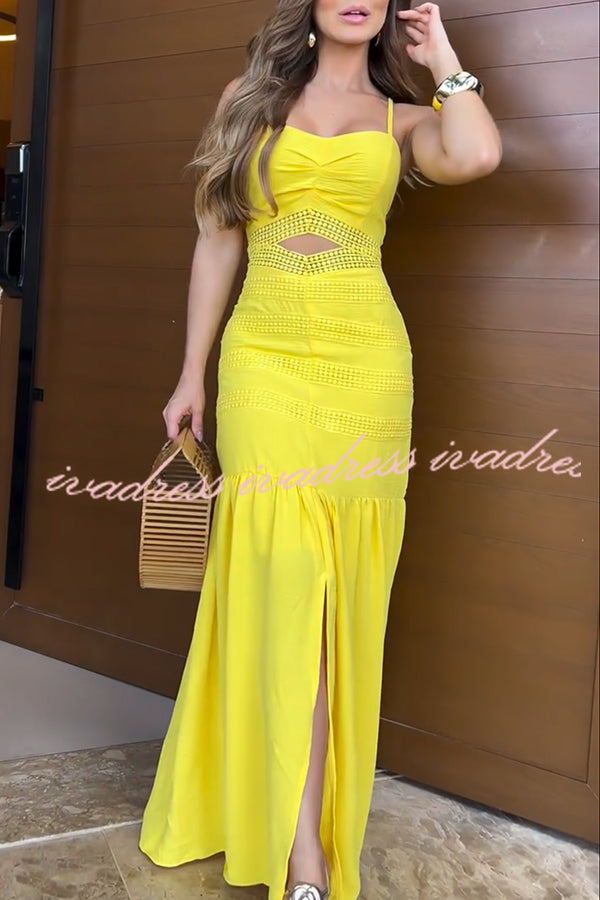Vestido largo con cola de pez hueca y patchwork de encaje de crochet de Beautiful Essence