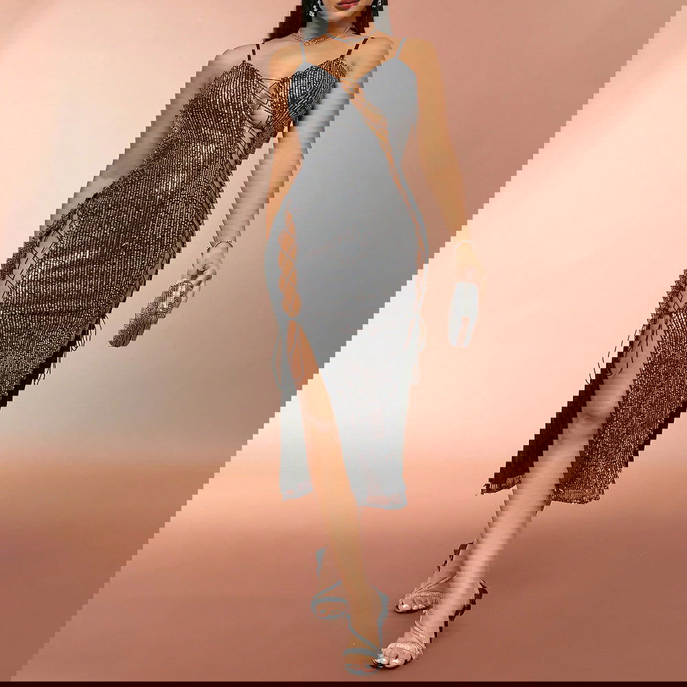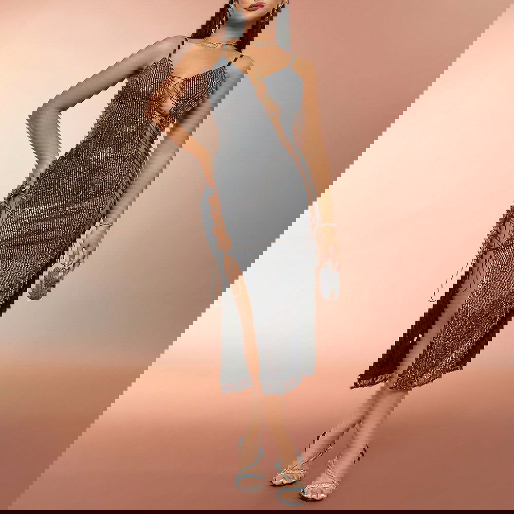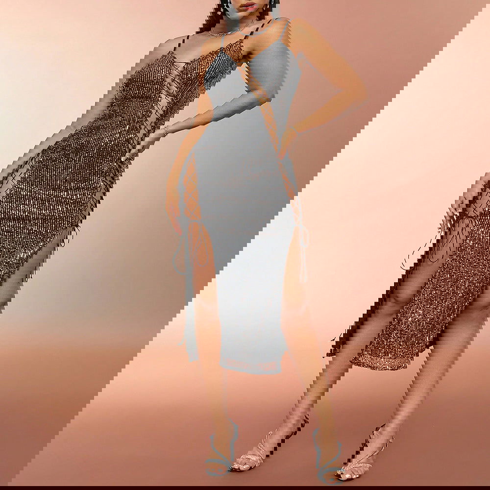 Best Hollow Out Cutout out Strap Sequined Slimming Slip Dress