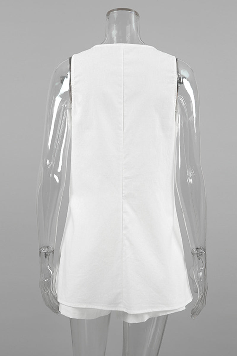 Casual Daily Solid Color Buttons V Neck Sleeveless Two Pieces