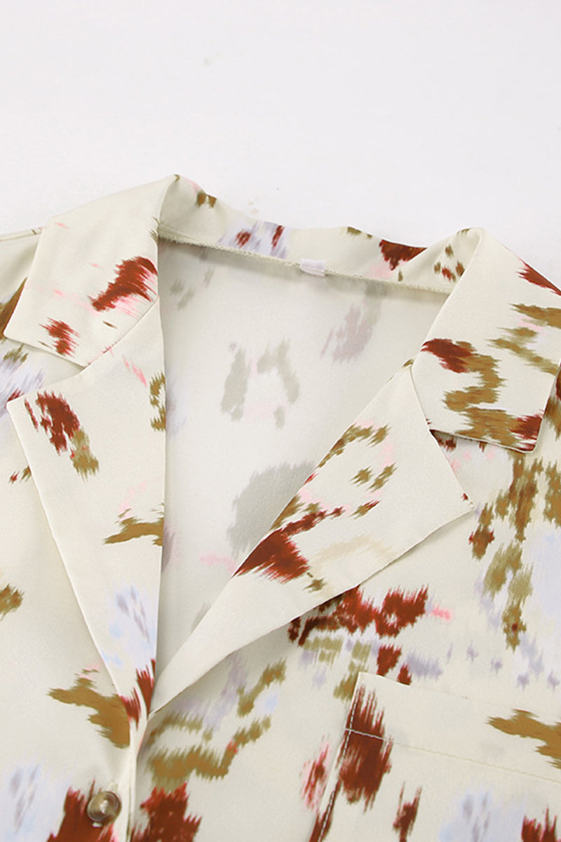 Casual Street Graffiti Print Contrast Turndown Collar Long Sleeve Two Pieces
