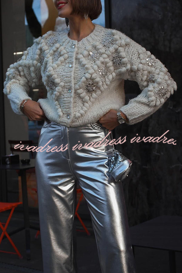 Cárdigan de punto con lentejuelas y pompones de flores