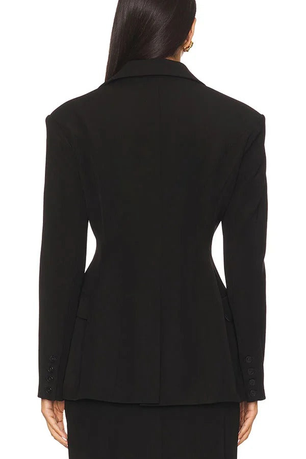 Blazer elegante con solapa y bolsillo, manga larga, hombros acolchados y cintura ajustada para vacaciones