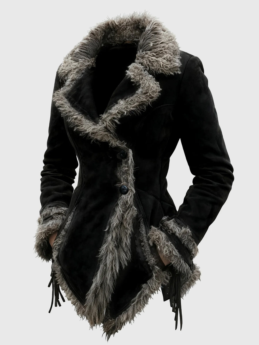Daily Faux Fur Brown Turndown Collar Long Sleeve Asymmetric Hem Western Pocket Chamois Jacket
