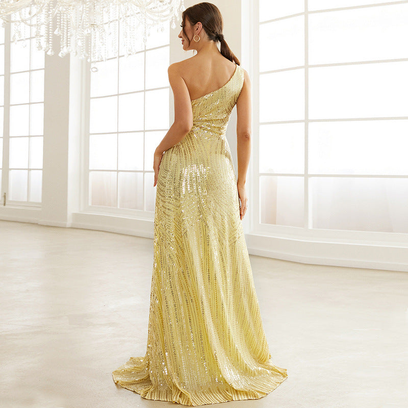 Elegant Party Crossbody Sequined Cocktail Split Fishtail Small Trailing Evening Dress for