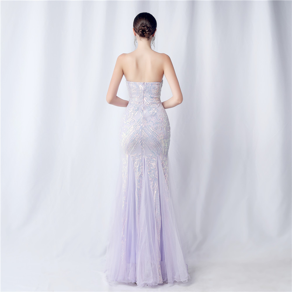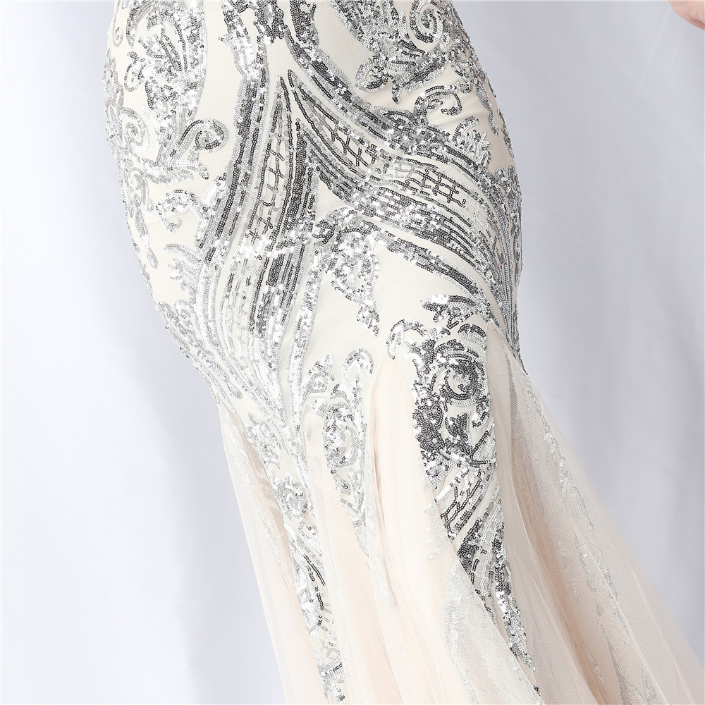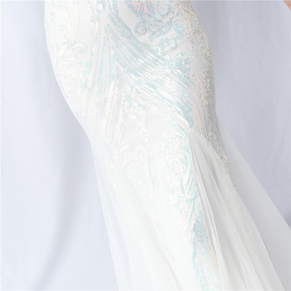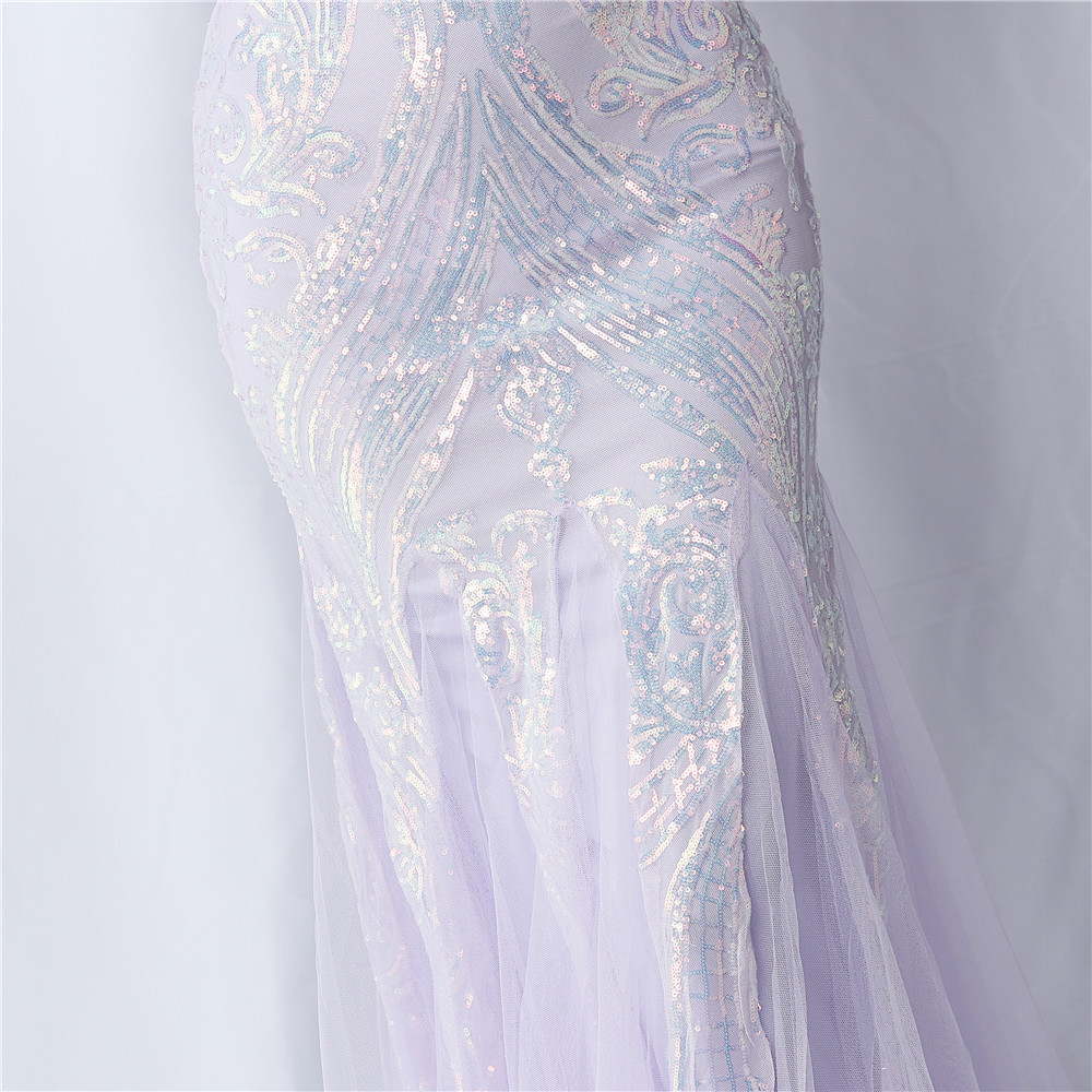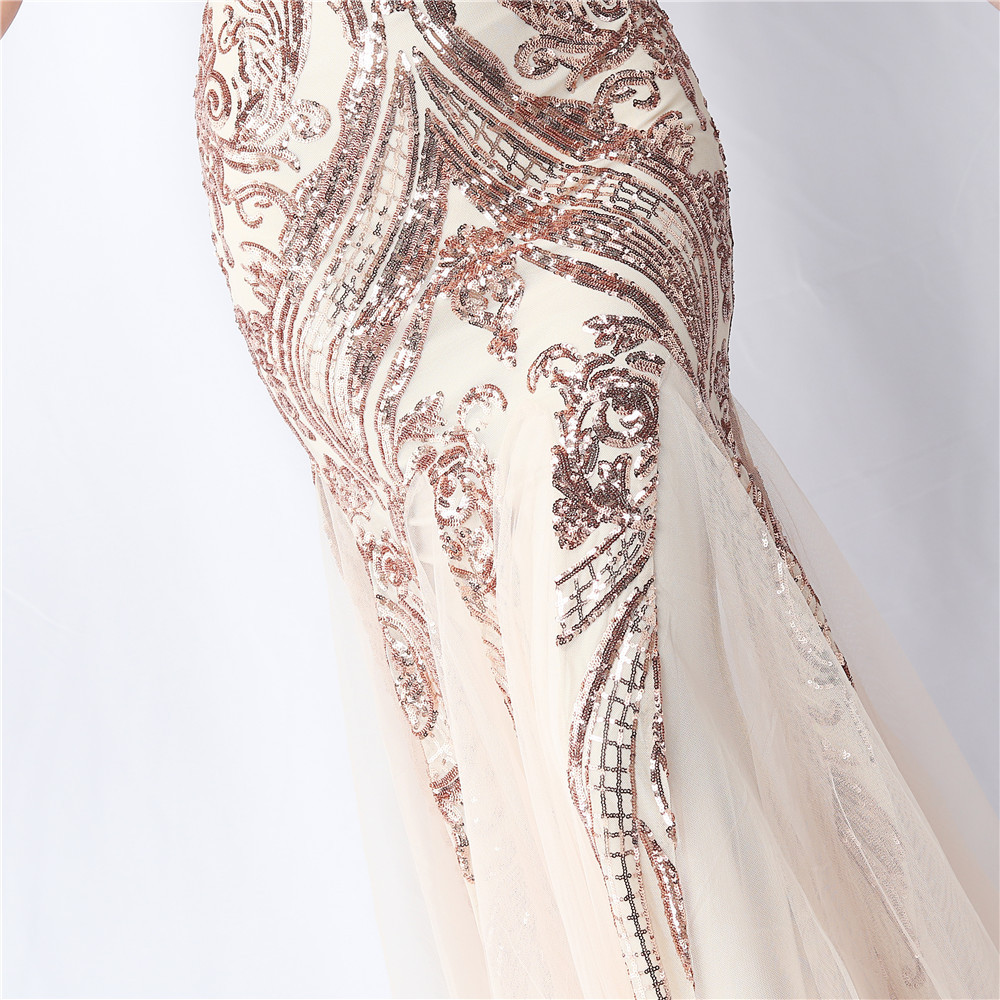 Floral Cutting Mesh Sequin Wedding Dinner Toast Annual Party Evening Dress