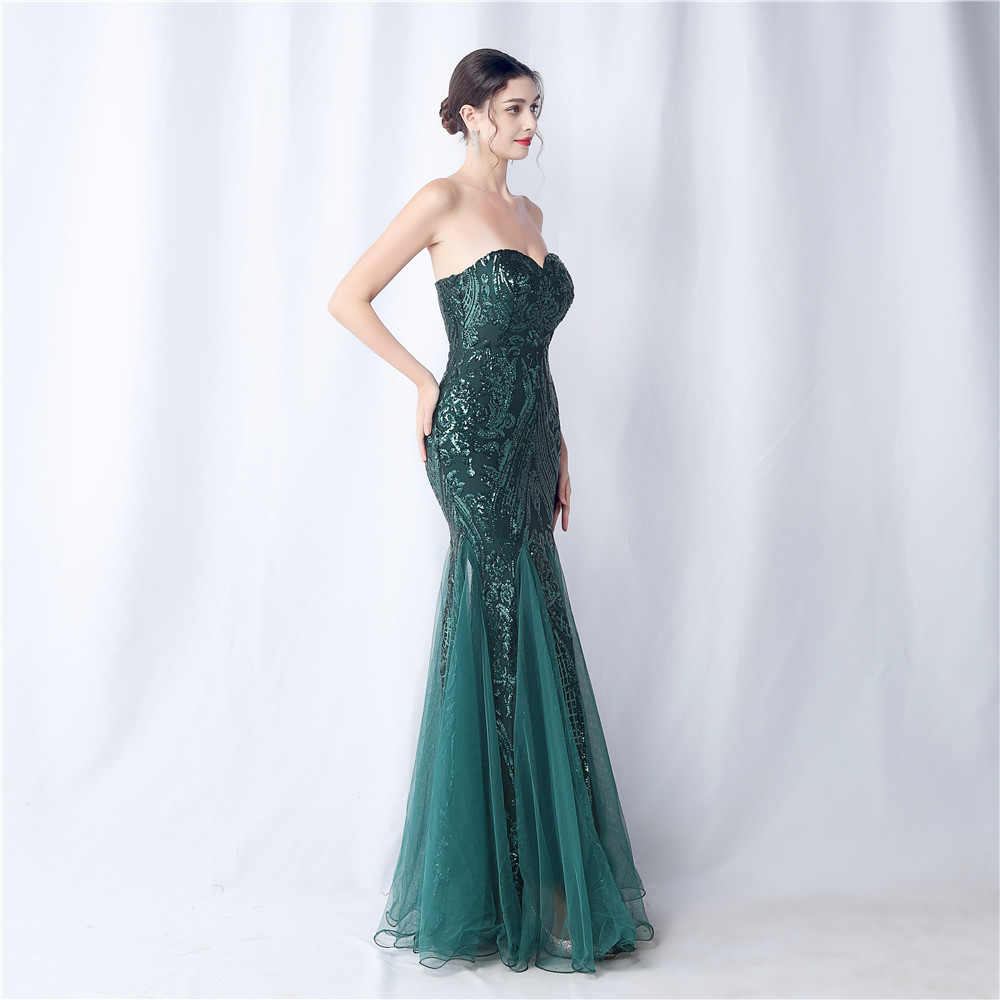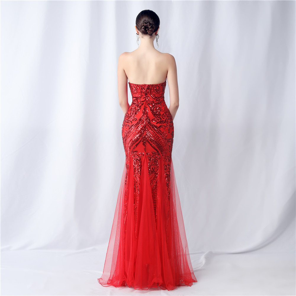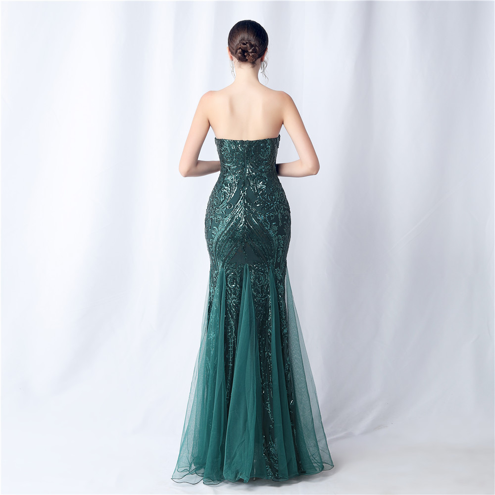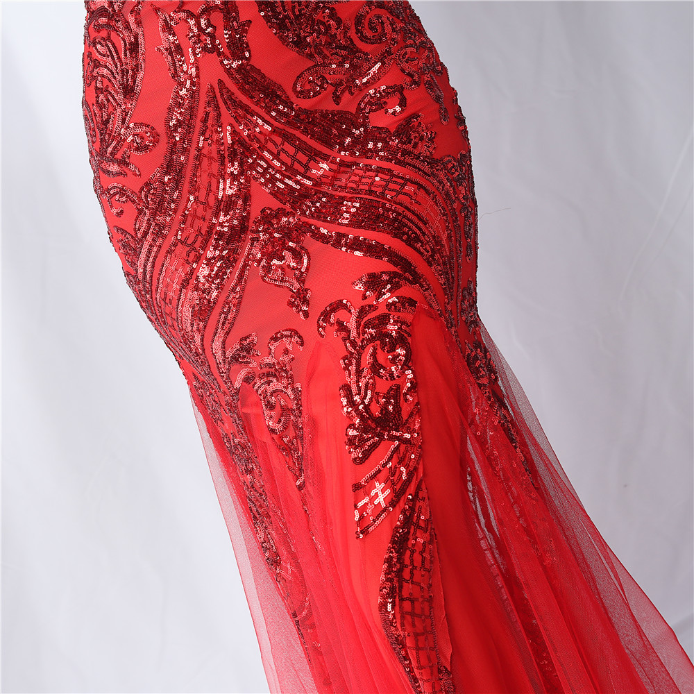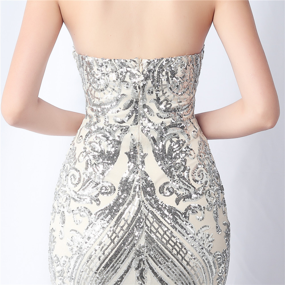 Floral Cutting Mesh Sequin Wedding Dinner Toast Annual Party Evening Dress