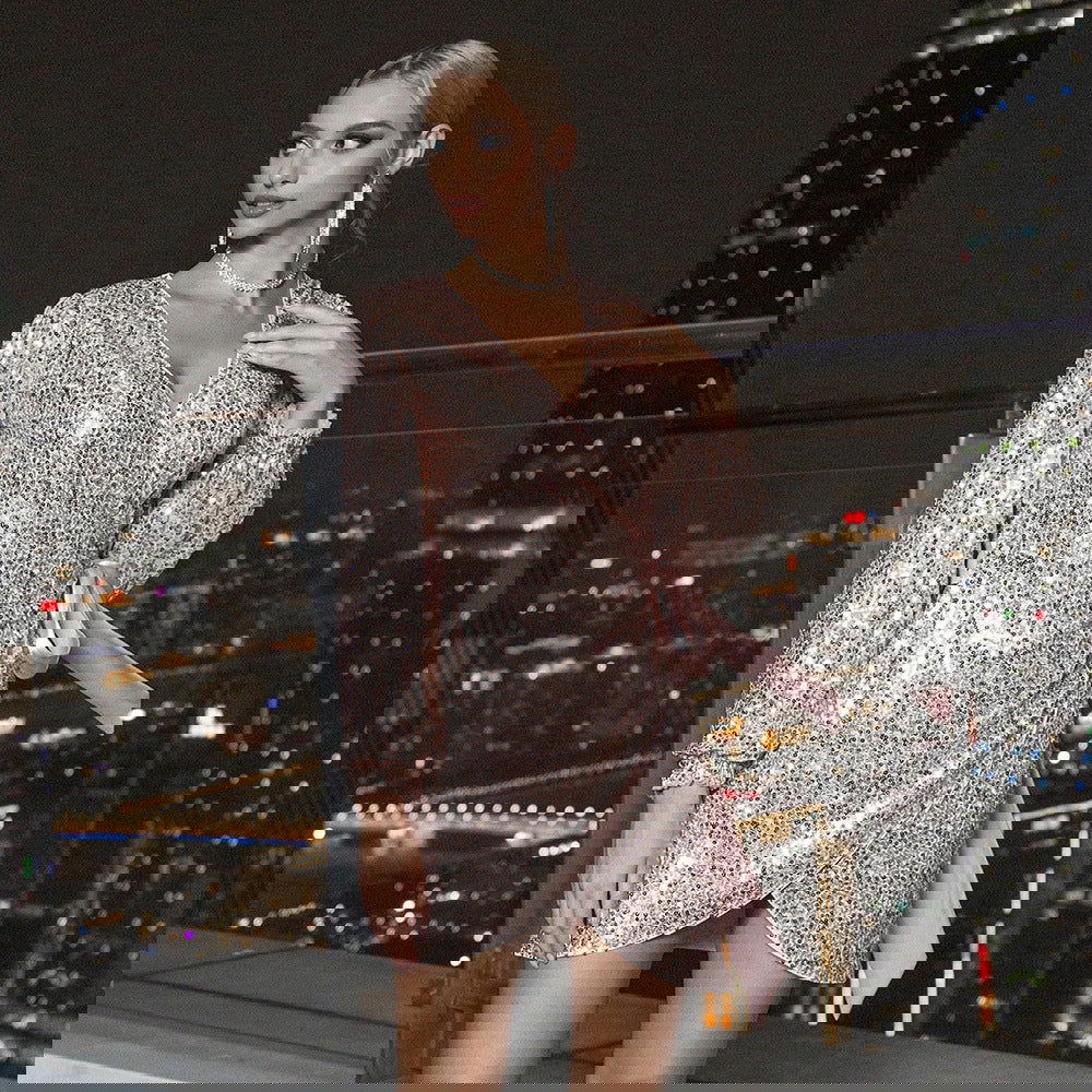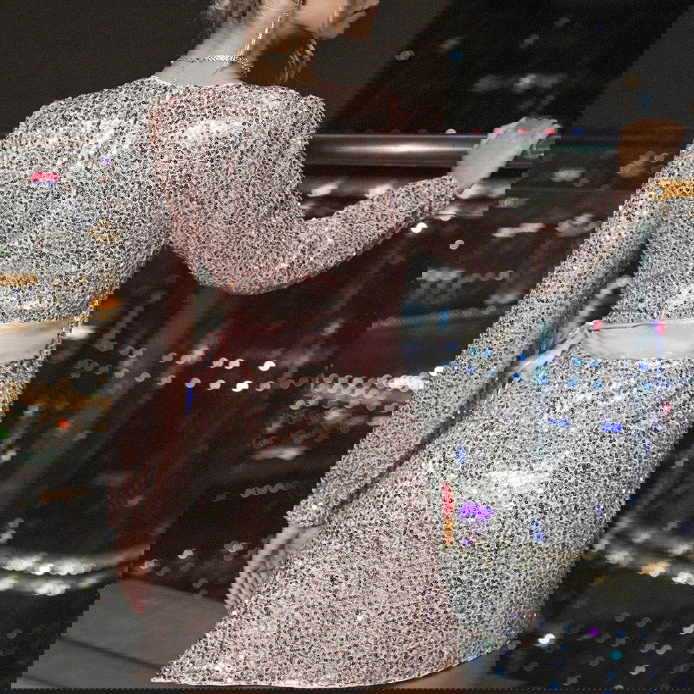 Gentle Dress Sequined V-neck Irregular Asymmetric Long Sleeve Short Dress