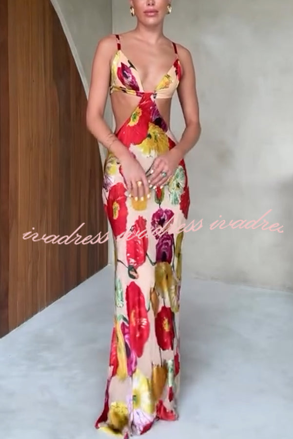 Vestido largo hawaiano con espalda descubierta y estampado floral de satén Hawaiian Dreams