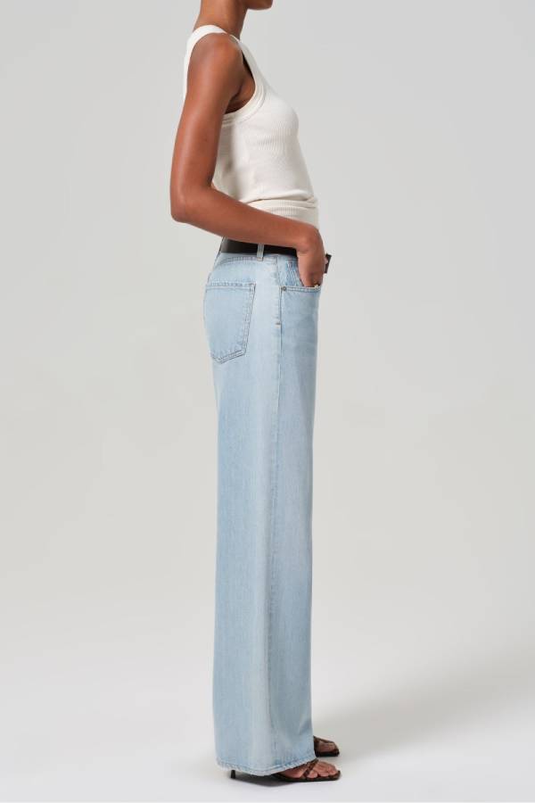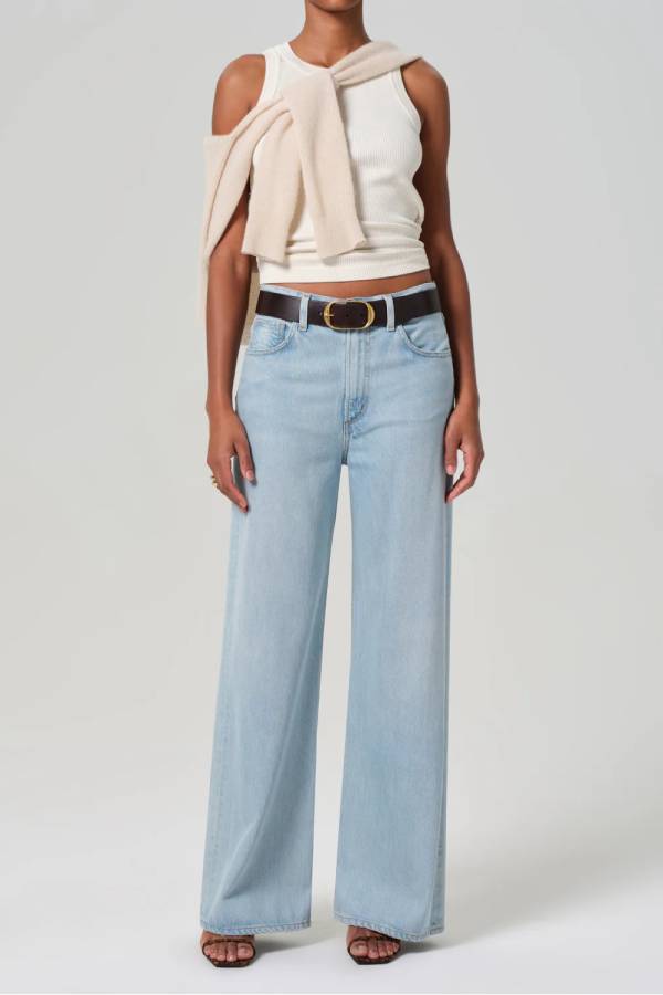 Vaqueros azul claro de cintura alta y pierna ancha
