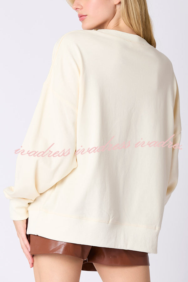 Sudadera informal holgada con bordado de calabaza colorida de Halloween