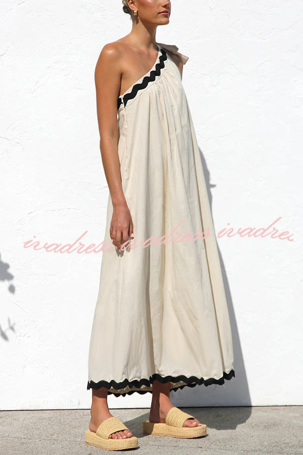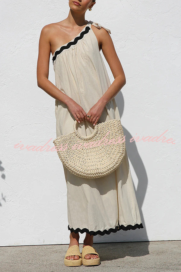 Vestido largo de lino con un hombro al descubierto y lazo para resort