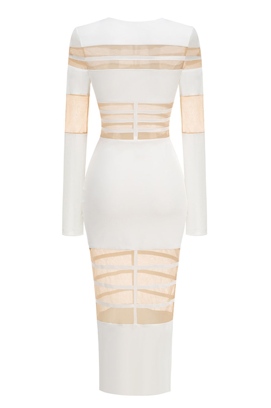 Londyn Mesh Long Sleeve Midi Dress - White