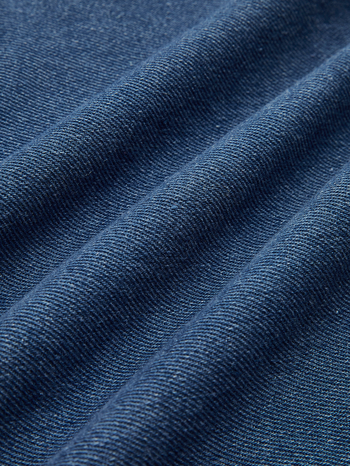Finished with gold-tone buttons and structured epaulettes, it balances utilitarian detailing with everyday elegance. The midweight denim construction makes it an ideal layer for transitional seasons, blending polish and practicality.