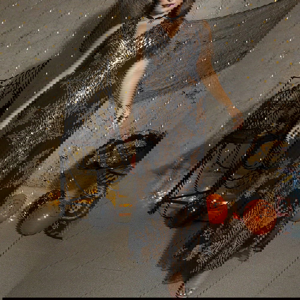 plus Size Sequined Embroidered Sleeveless Evening Dress