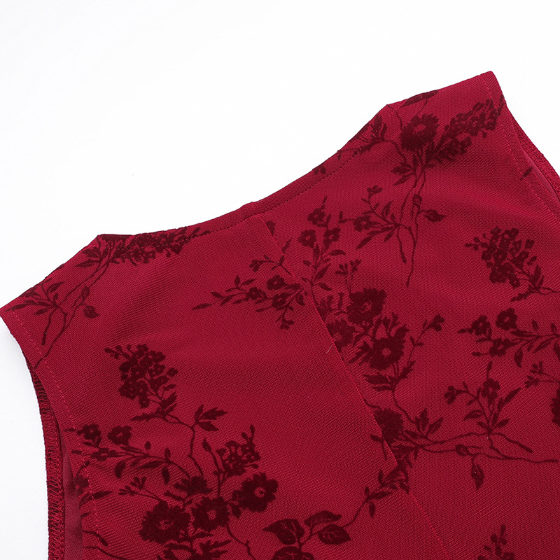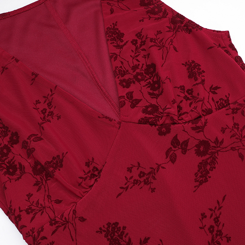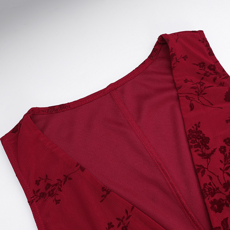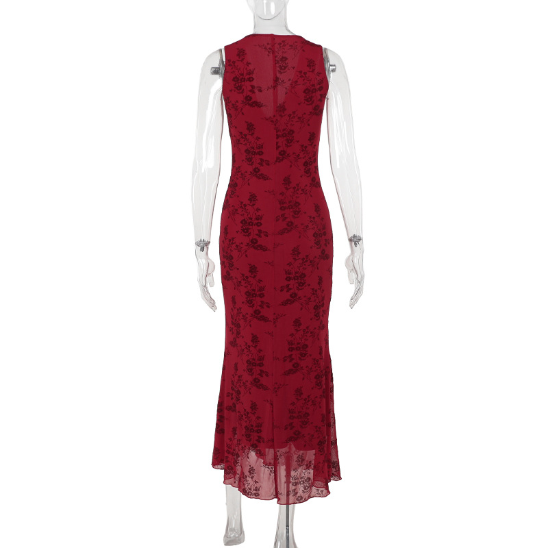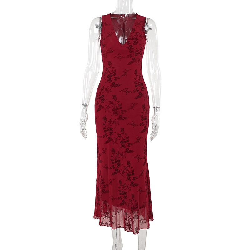 Fashionable Printed Vest V neck Dress Slim Fit Waist Slimming Maxi