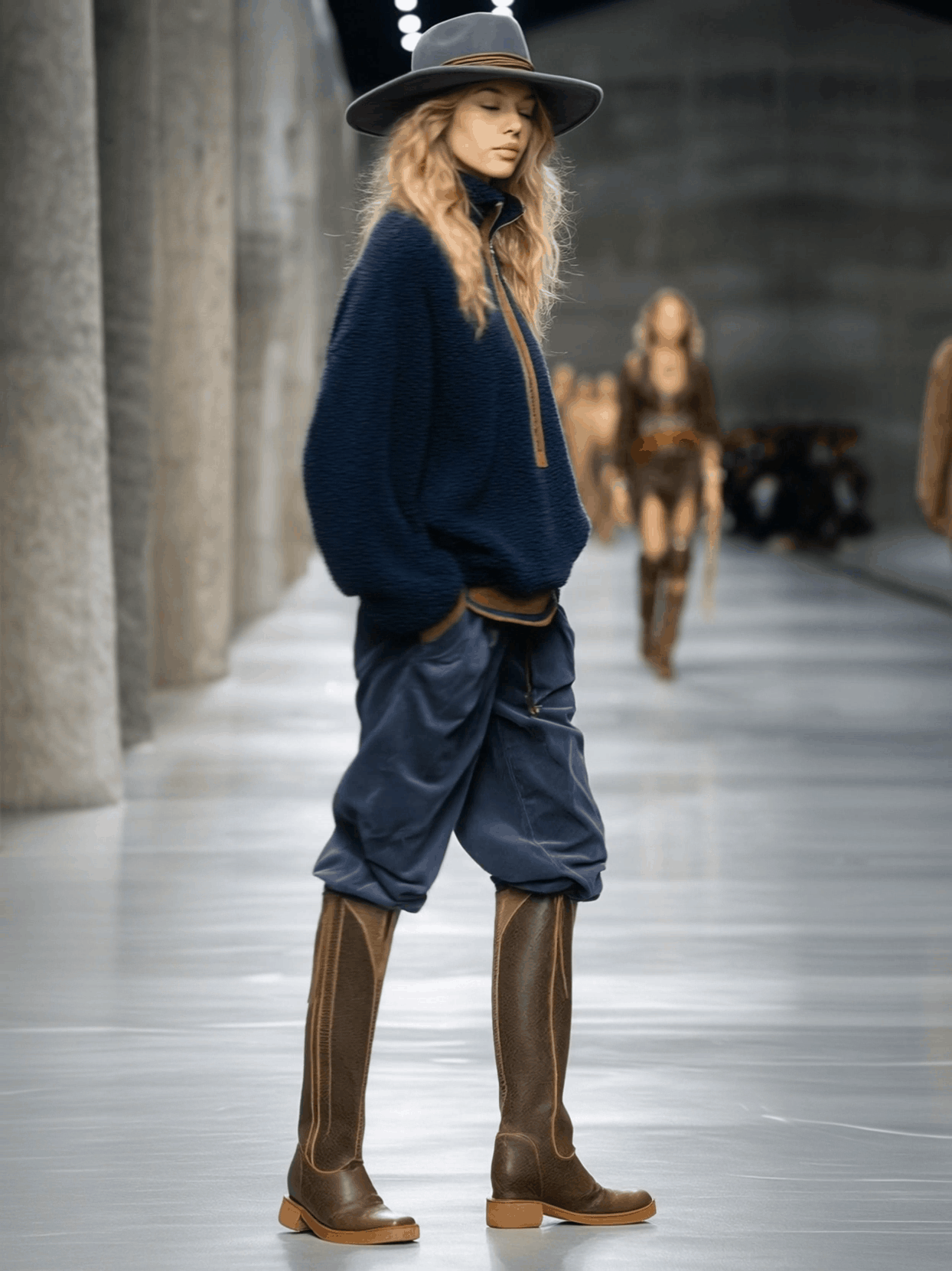 Retro And Fashionable Brown Trim Blue Teddy Fleece Sweatshirt