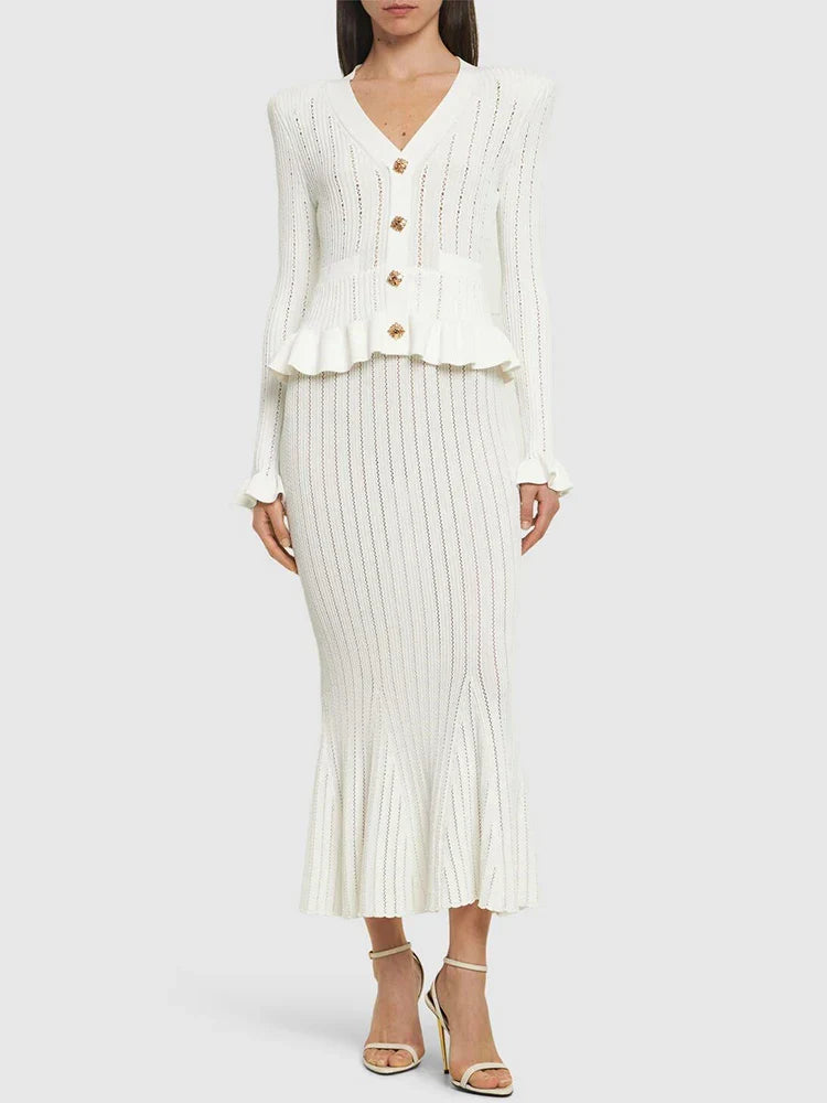 Ruffle Knitted Long Sleeve Mermaid Midi Dress