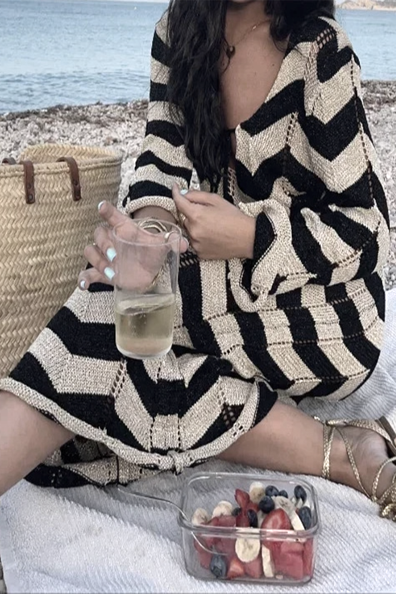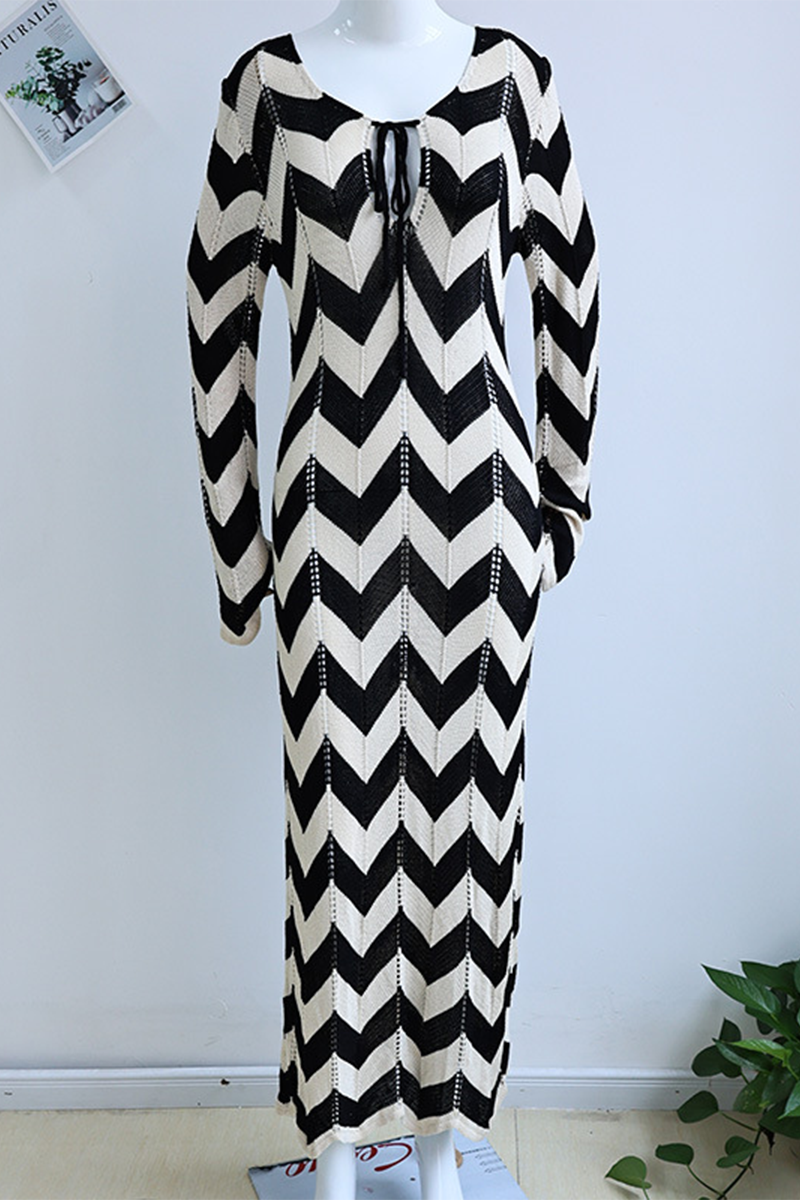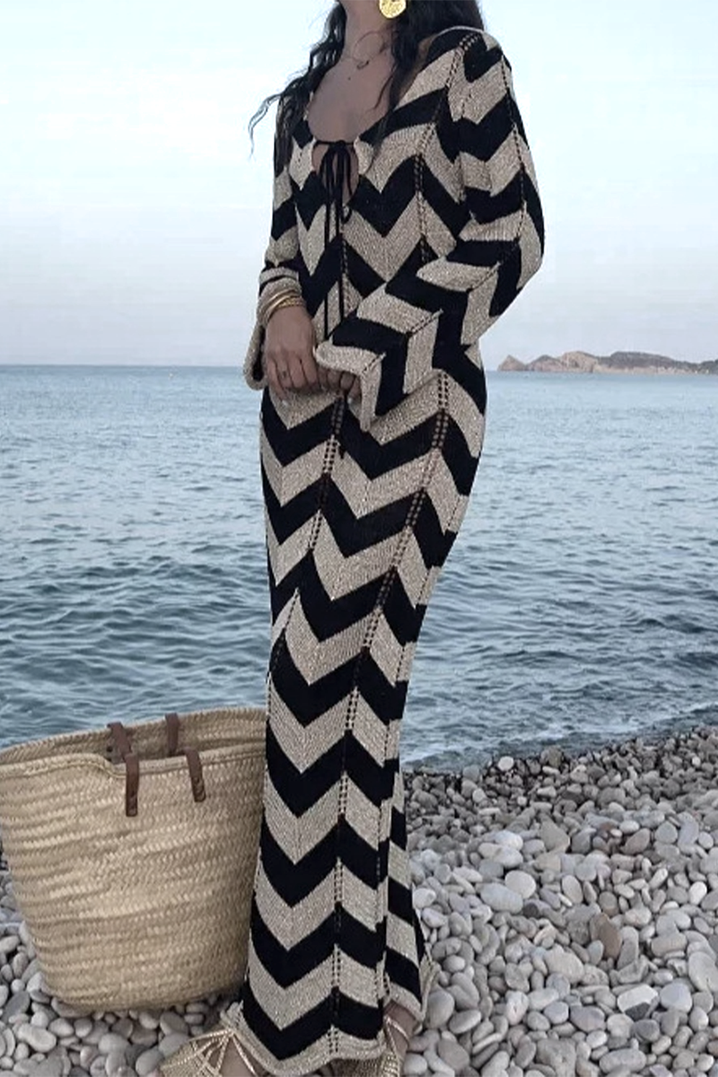 Sexy Colorblock Lace Up Weave V Neck One Step Skirt Dresses