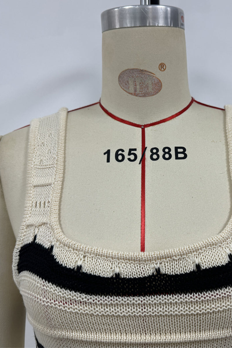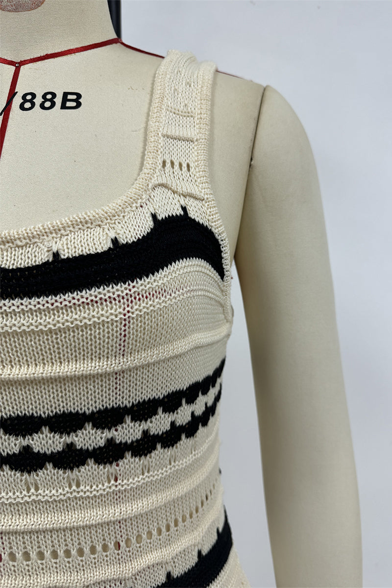 Sexy Stripe Weave Contrast U Neck One Step Skirt Dresses