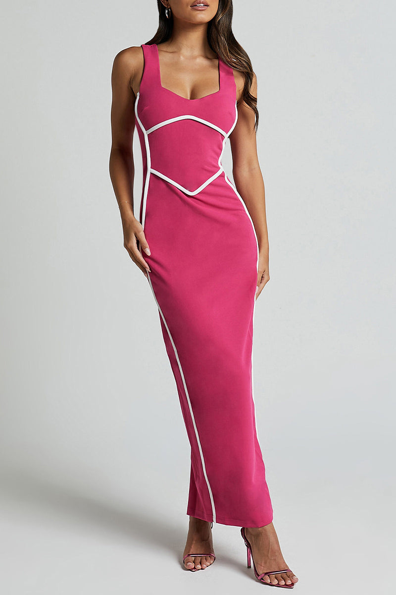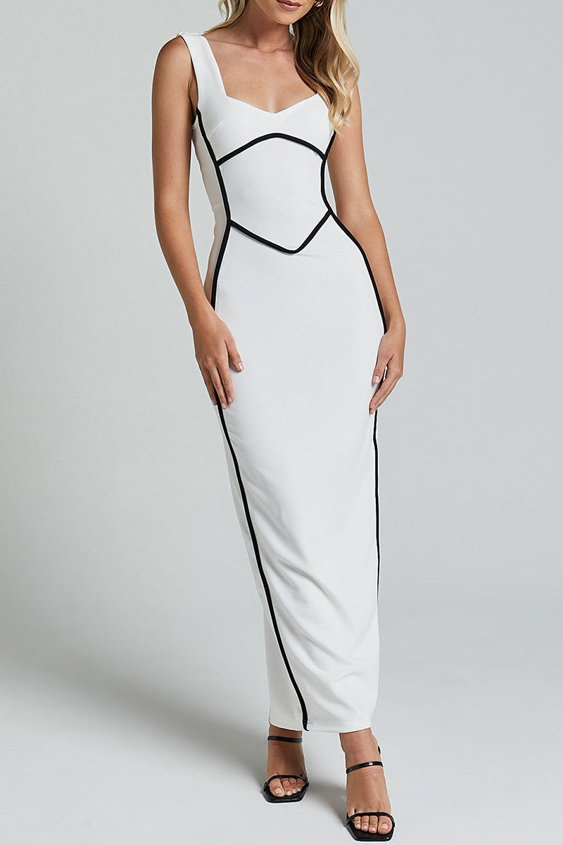 Sexy Striped Contrast V Neck One Step Skirt Dresses