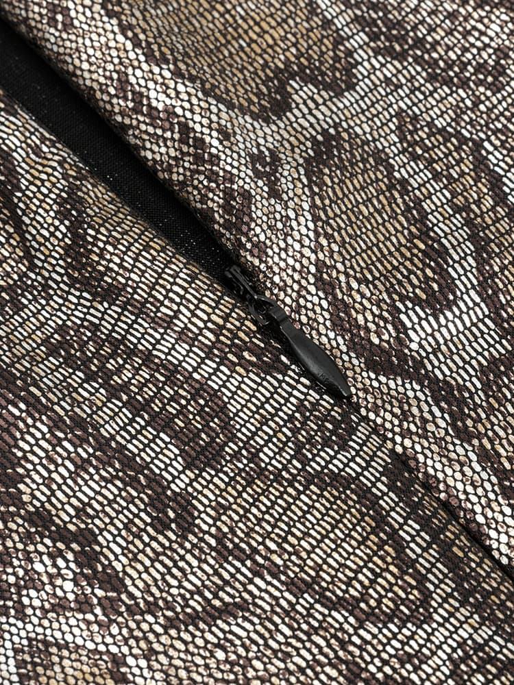 Step into a world of bold elegance with this sexy vintage-inspired glossy print dress. The sleek, shiny fabric adds a high-fashion touch, while the unique round neckline and long sleeves keep the look sophisticated. The eye-catching waist cut-out reveals just the right amount of skin, and the asymmetric hemline gives the dress an edgy, modern twist. Perfect for cocktail parties, evening soirees, or special events, this dress makes a powerful statement wherever you go.