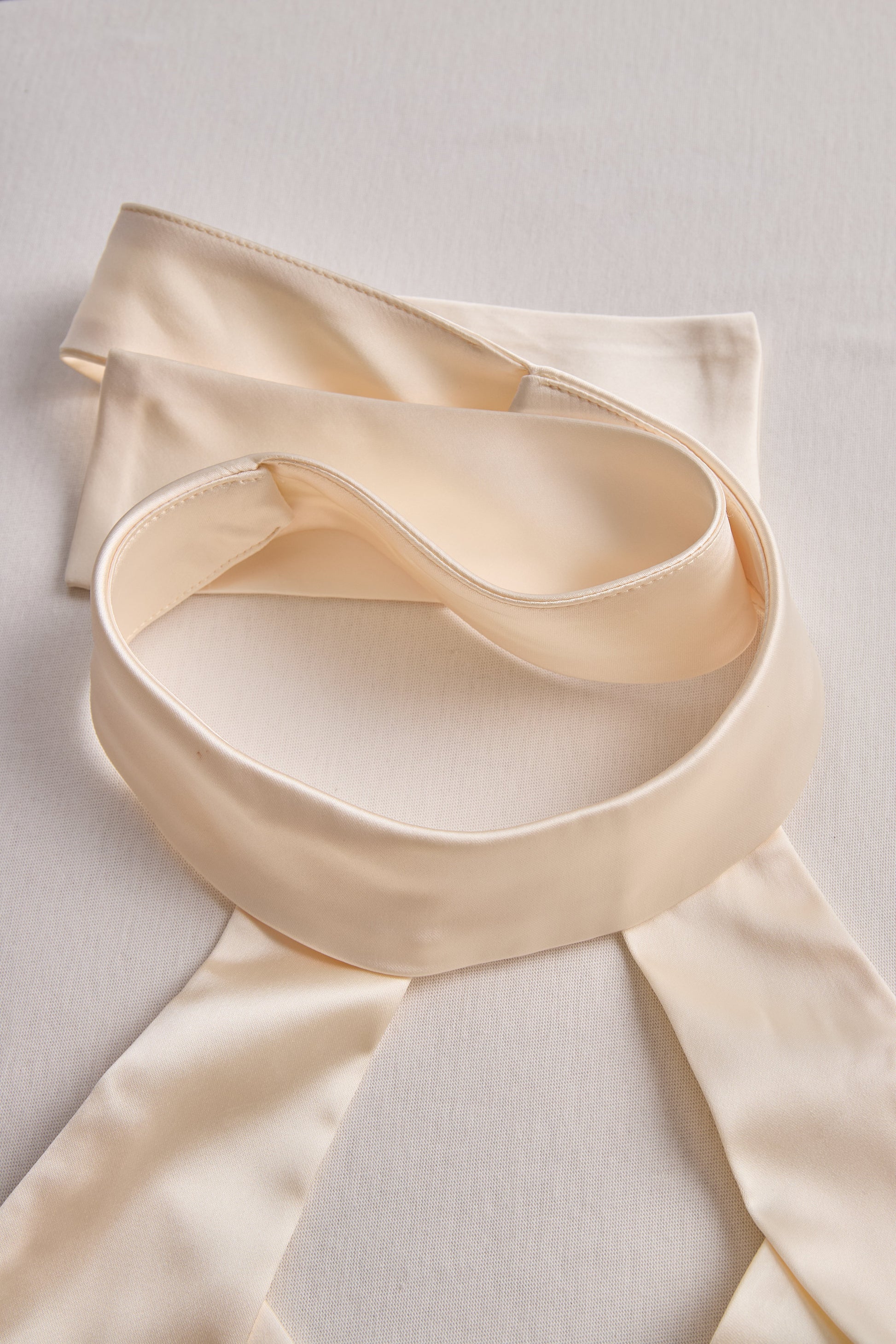 Mooyius presents the Stylish Satin Halter-Neck Mini Dress to elevate your sophisticated look. Make a stunning entrance in this white satin mini dress, featuring a sleek halter neckline with a chic choker detail and a softly contoured bodice.