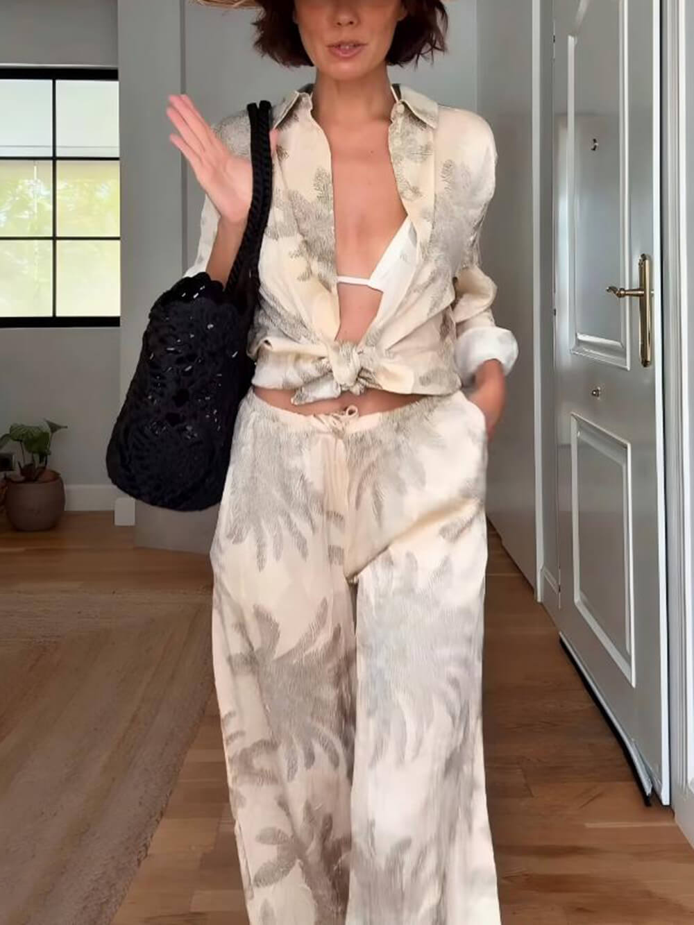 * Unique palm leaf print for bold, tropical flair
