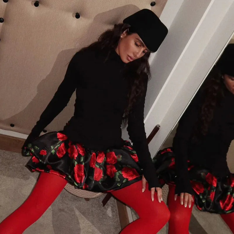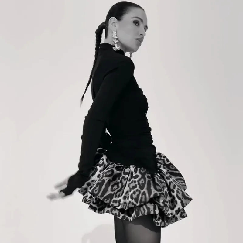 Turtleneck Patchwork Print Polka Dot Mini Dress