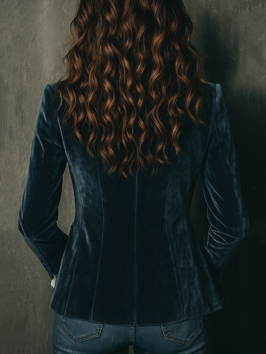 Discover the Vintage Flower Embroidered Cuffs Polyester Velvet Blazer, a blend of timeless elegance with a modern twist. This exquisite blazer is crafted from high-quality polyester velvet, offering a luxurious feel and sophisticated look. The standout feature is the intricately embroidered floral design on the cuffs, adding a touch of vintage charm and femininity to your ensemble.