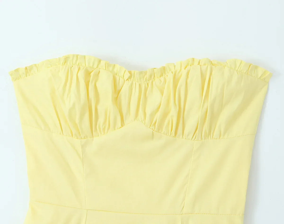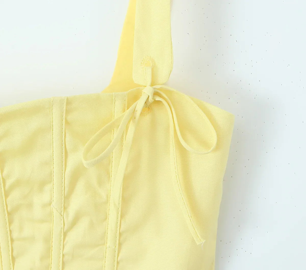 Yellow Slit Midi Dress and Cross Lacing up Top Set
