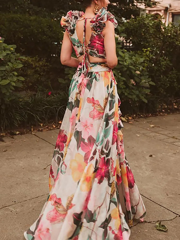 This dual-style swimwear set delivers versatile glamour for any beach occasion. The first style features a deep V-neckline with intricate 3D floral appliqués and side cutouts, radiating femininity and allure. The second design offers a sleek long sleeve silhouette with bold cutout details, blending elegance with sun-smart coverage. Together, they make the perfect combination of romantic and modern beachwear aesthetics.