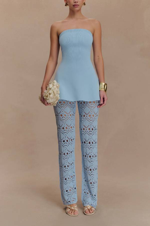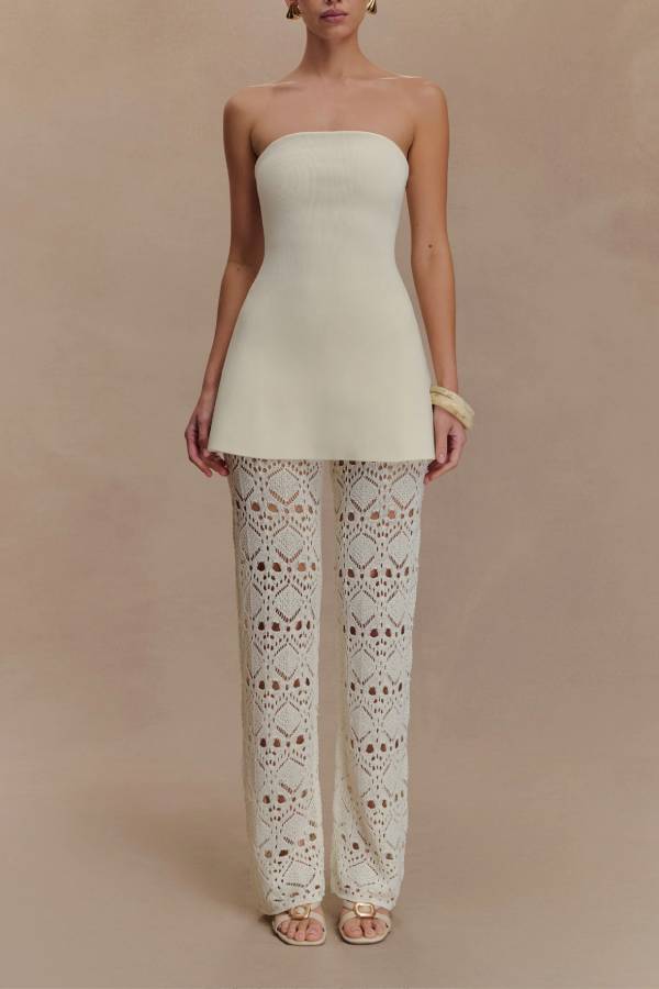 Anette Bandage Knit Strapless Stretch A-line Midi Top
