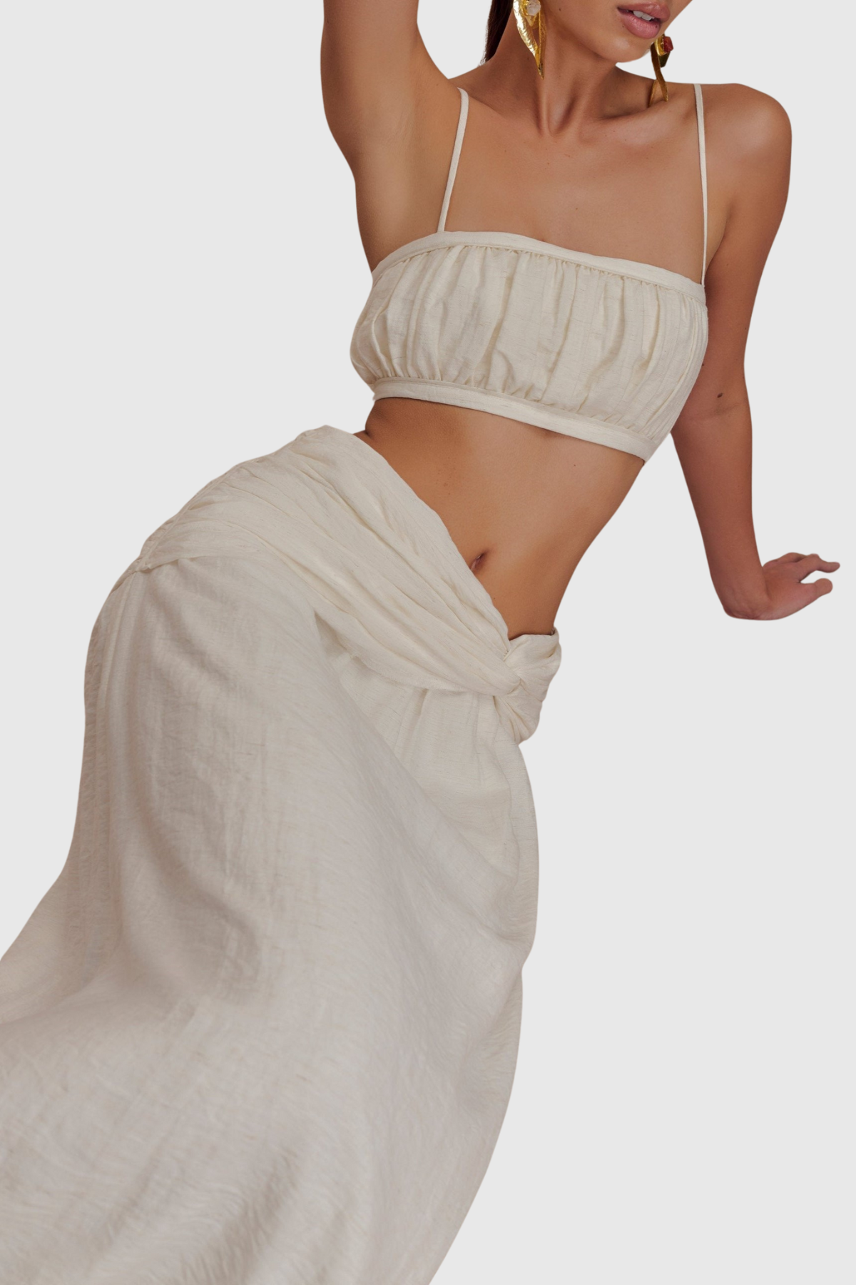 Annike Ruched Top & Knot Maxi Skirt Set - White