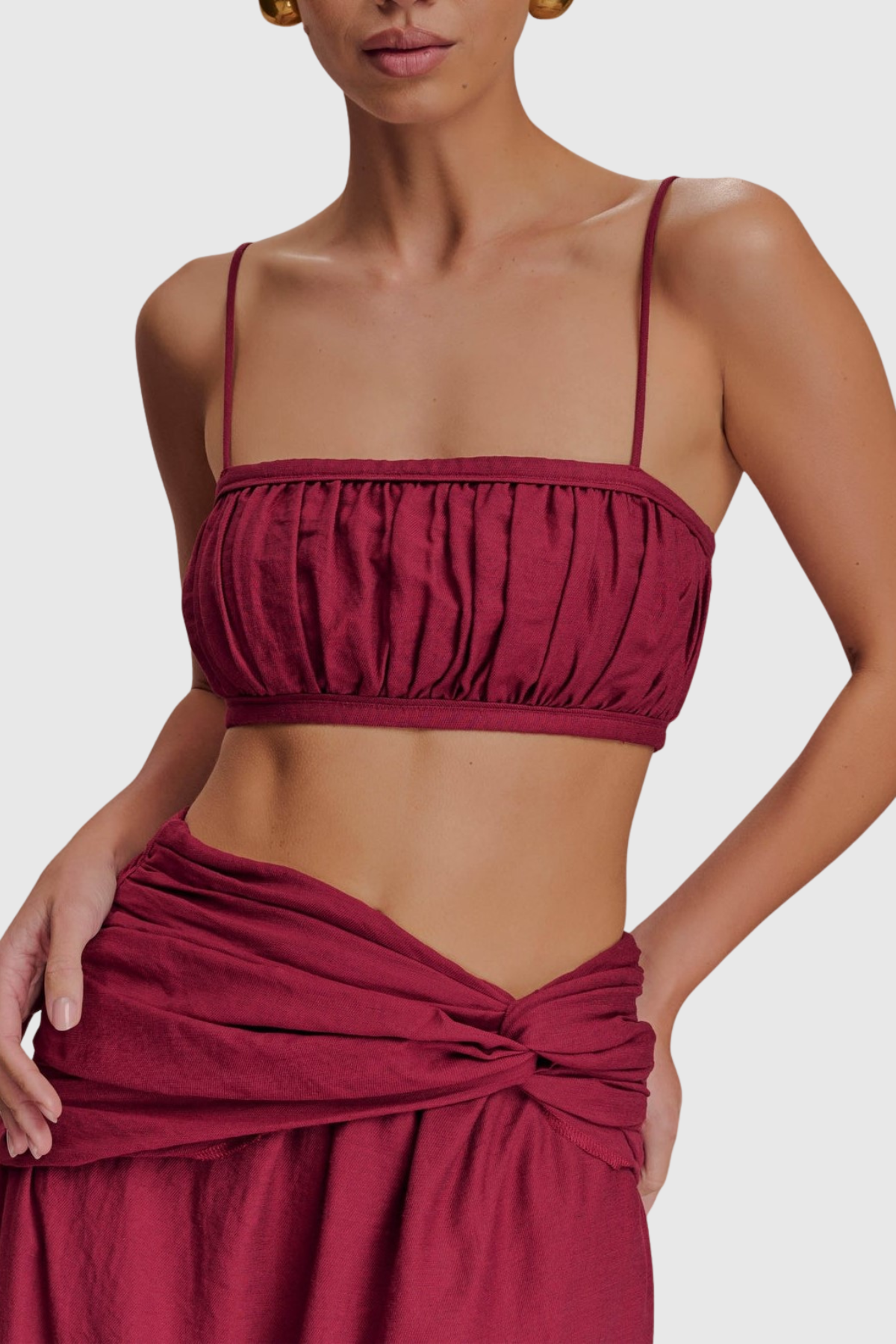 Annike Ruched Top & Knot Maxi Skirt Set - Wine