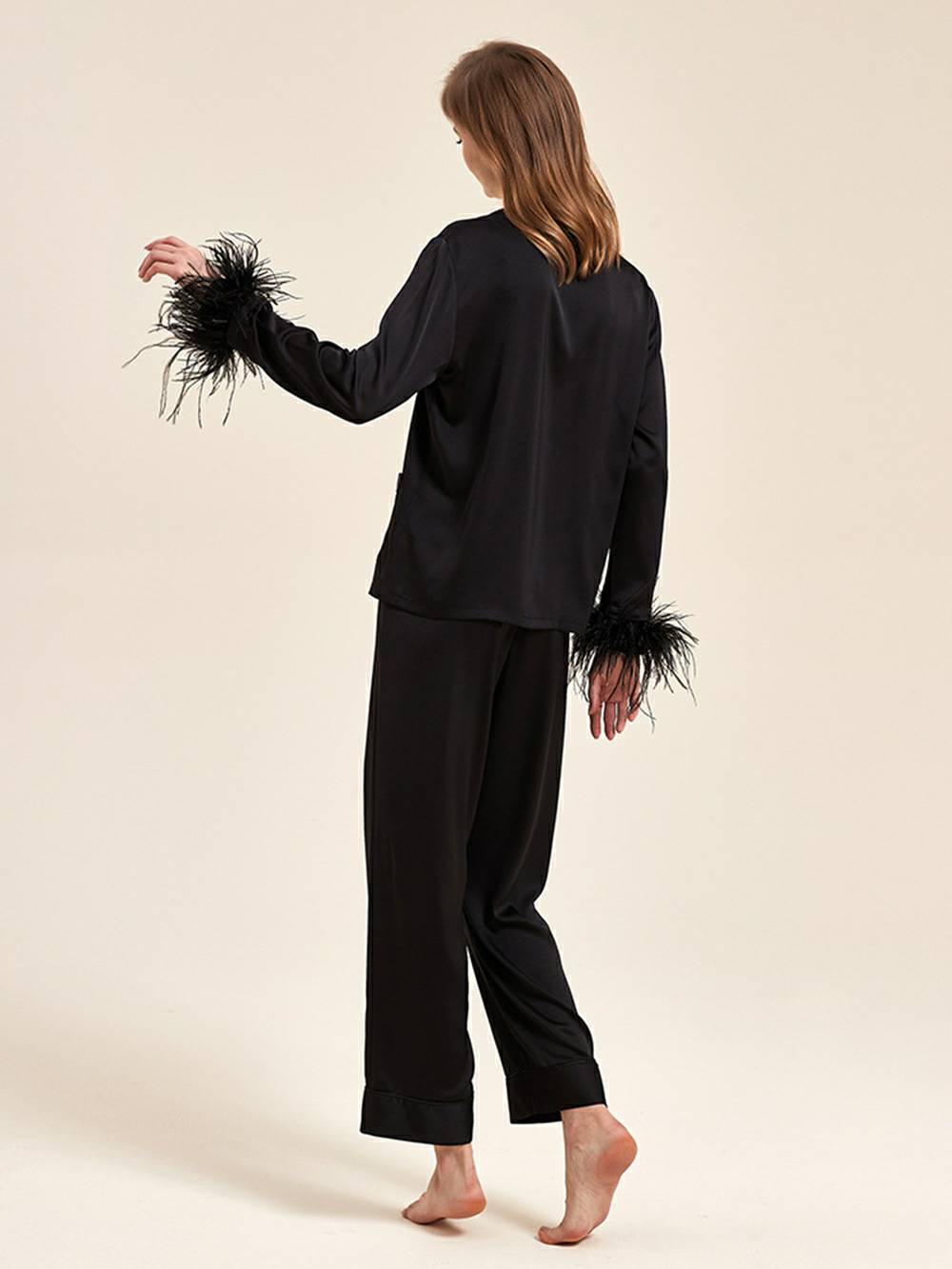 Who knew Morning could look this cute?! This set includes cozy tie waist pants, a super soft bejeweled button-down top, and fabulous feather cuffs. Did we mention that the feather cuffs are detachable to make for an easy wash? Slip into our Kris Kringle Pajamas Set after a long day, because you've earned it! Also makes the perfect gift for your girl gang!