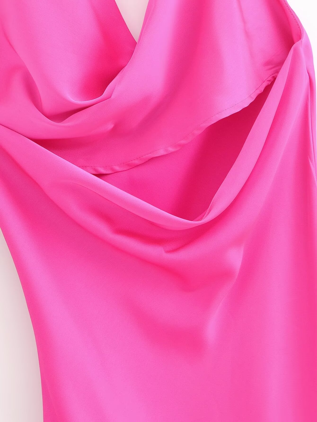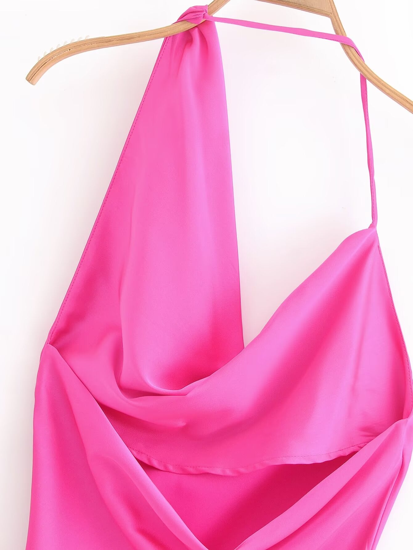Asymmetric Silk Satin Texture Underwear Midi Halter Dress