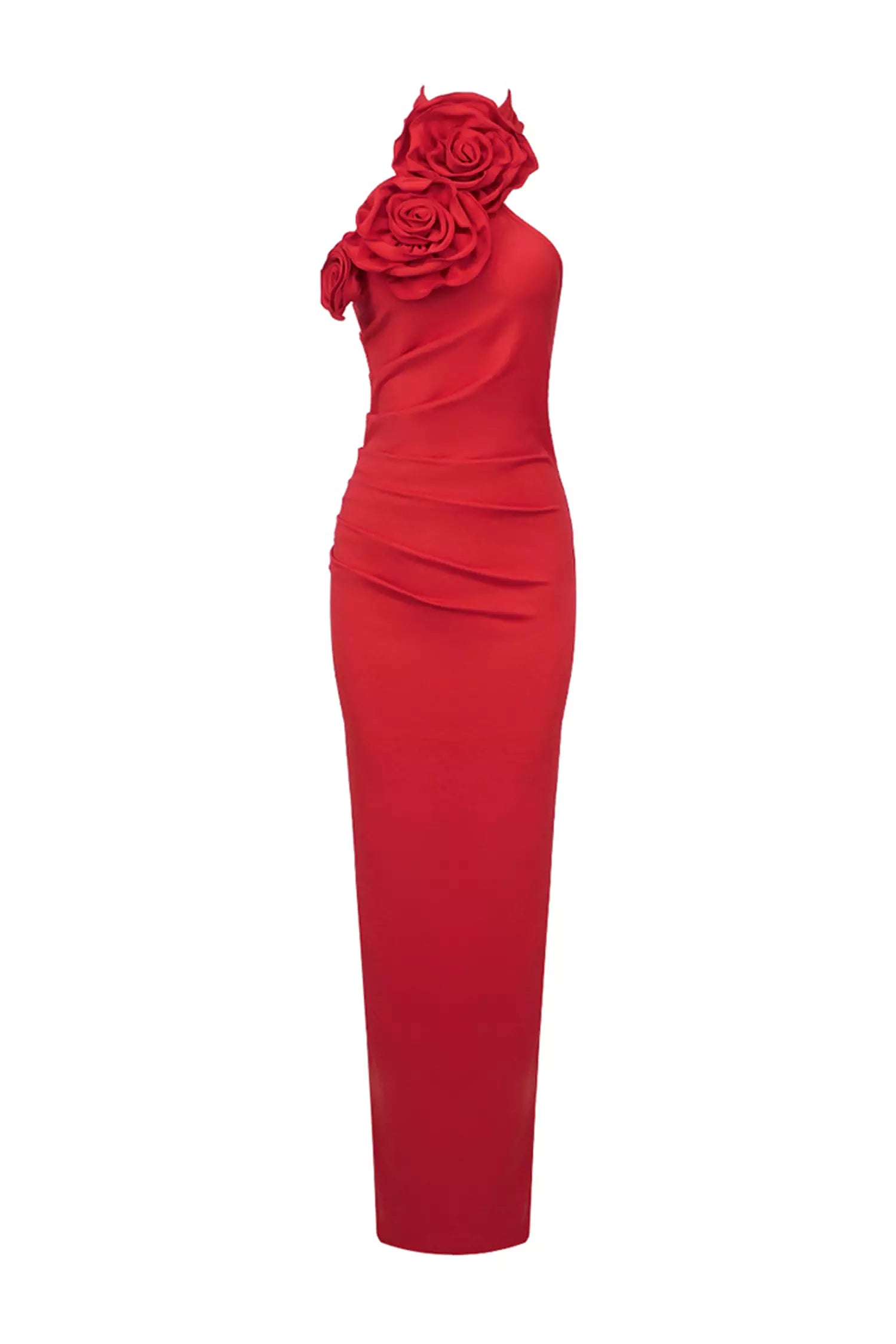 Spending a sunny day in Aylin Red Floral Ruched Halter Maxi Dress is your dream for days to come! The 3D florals add a touch of femininity, while the slit skirt allows for freedom of movement and adds a touch of sensuality. Off-the-shoulder tops are designed to show off your collarbones and shoulders. Complete the look with your favorite heels and delicate jewelry. Suitable for weddings or important banquets.