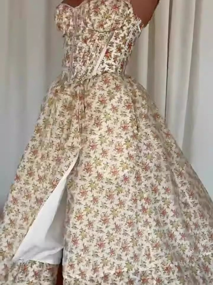 Embrace vacation vibes in this stunning backless midi dress featuring a delicate floral print and daring high slit. The spaghetti straps and fitted silhouette accentuate your curves, while the lightweight fabric ensures breezy comfort. Perfect for beach weddings, resort evenings, or tropical getaways.