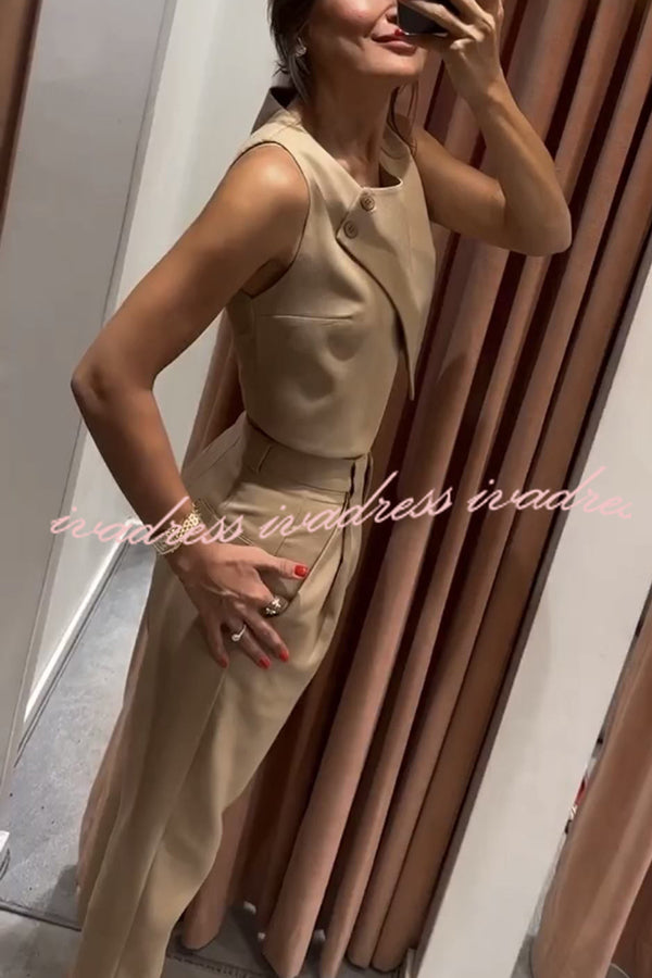 Balvin Linen Blend Cross Button Neck Crop Vest and High Rise Pocketed Pants Set
