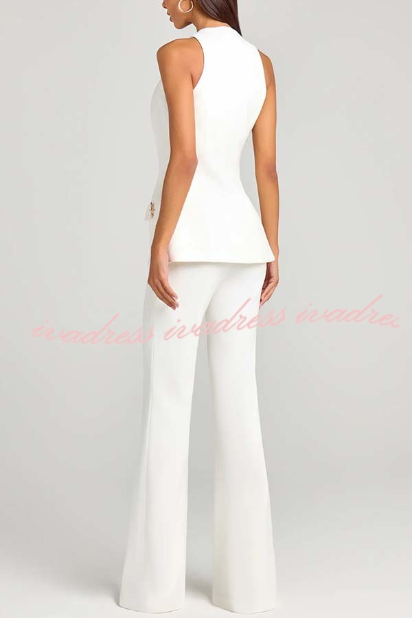 - Made from double crepe, this vest has a structured silhouette with flowing lines. The sweetheart neckline is feminine. The flared silhouette with a nipped waist and subtle seaming details create our signature silhouette. The crossover snap buttons add a touch of luxury. Our distinctive clothing will add instant style to your wardrobe.