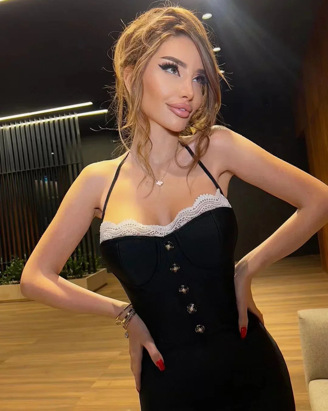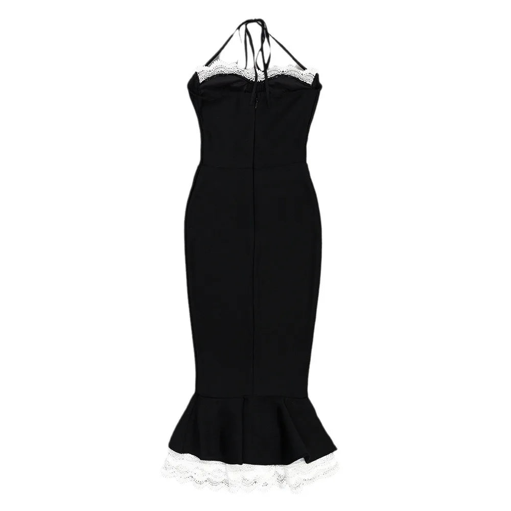 Black Lace Trumpet Spaghetti Strap Midi Dress