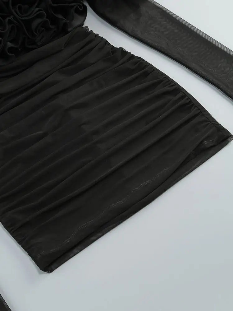 Black Mesh Full Sleeve Ruffles Mini Dress