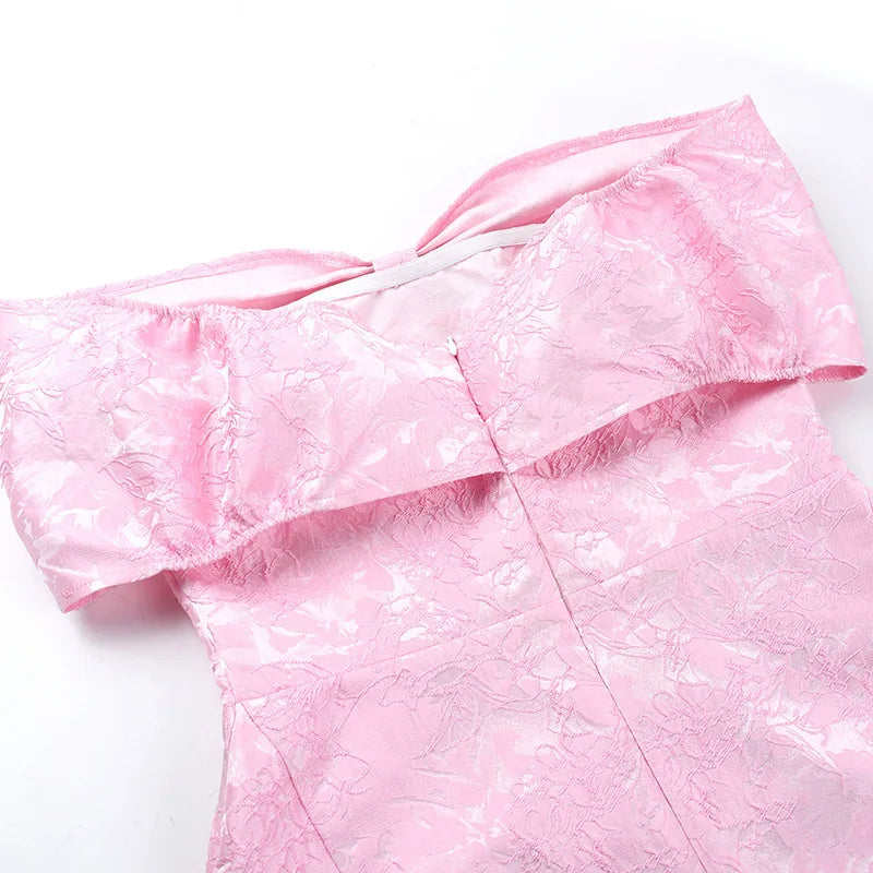 Bow Off Shoulder Backless A-line Jacquard Party Dress
