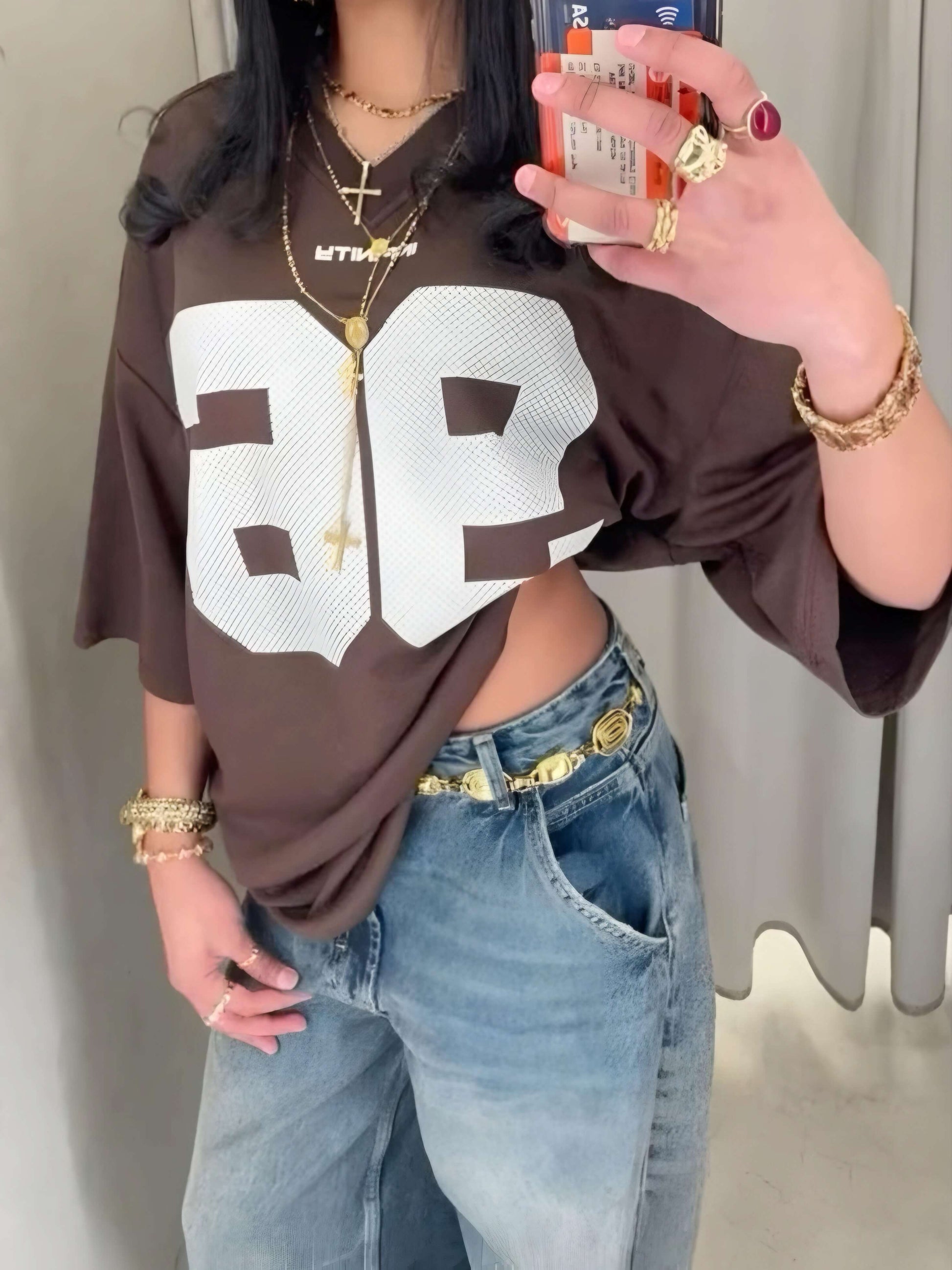 Brown Oversized '96' Jersey T-Shirt