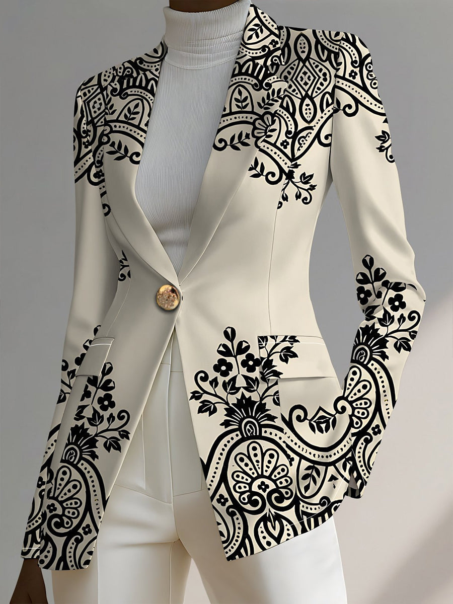 Business Casual Black Leopard Turndown Collar Long Sleeve Pocket Casual Button Blazer