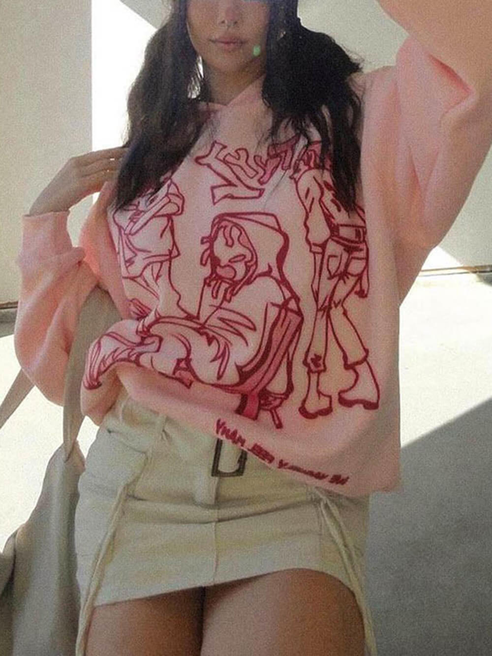 The character print on this hoodie adds a pop of color and creativity to your outfit. It's a fantastic conversation starter and a reflection of your playful spirit.