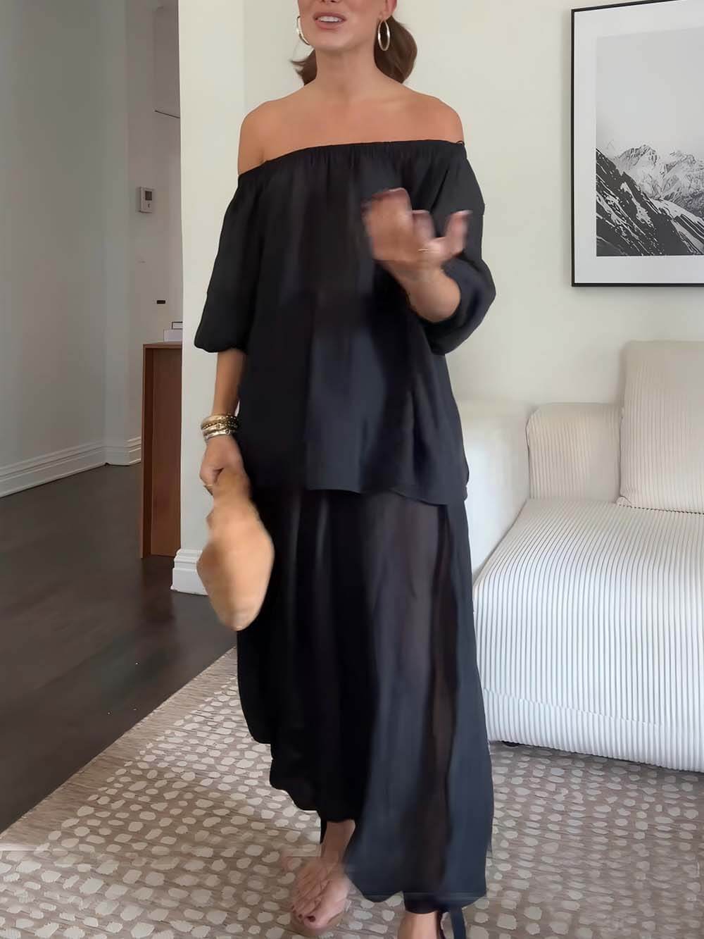 Casual Chiffon Off-Shoulder Puff Sleeve Top -- A breezy chiffon top with off-shoulder charm and playful puff sleeves, perfect for a relaxed yet feminine everyday look.