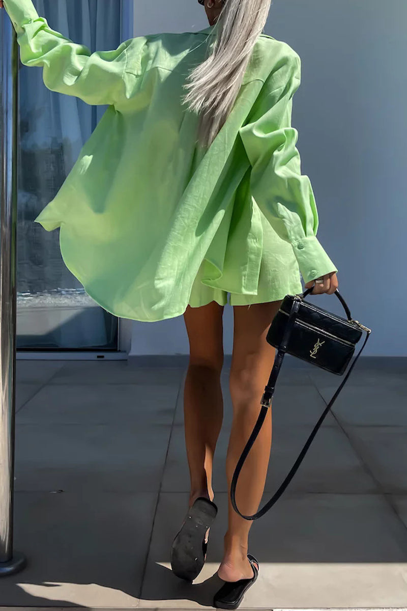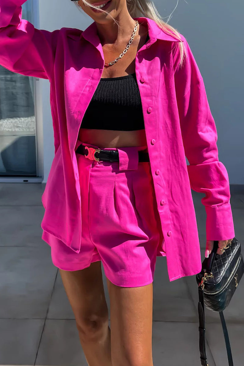 Casual Solid Color Buttons Patchwork Turndown Collar Long Sleeve Two Pieces(No Belt)(3 Colors)