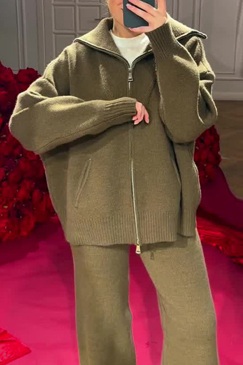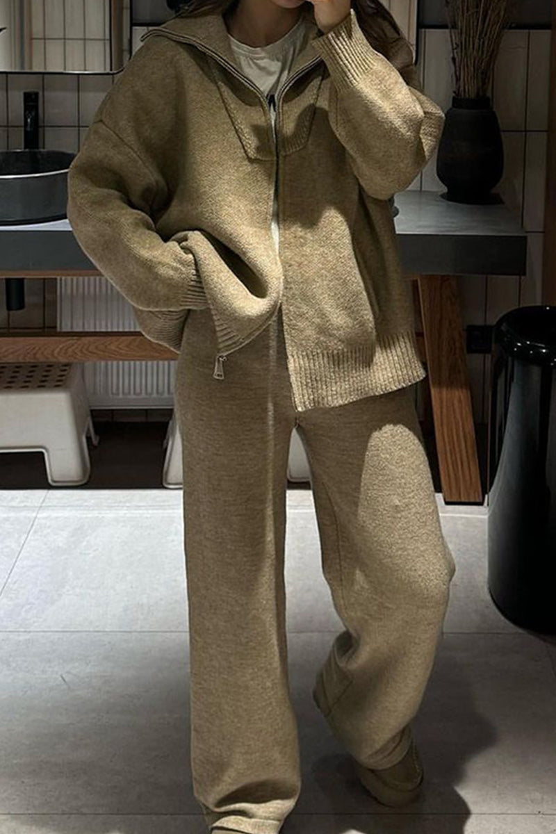 Casual Patchwork Zipper Turndown Collar Long Sleeve Two Pieces(7 Colors)